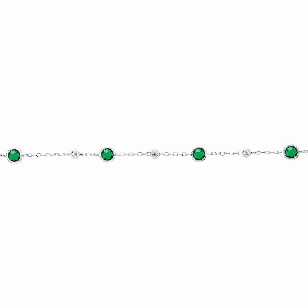 Sterling Silver Bezel-Set CZ & Bead Bracelet - Emerald
