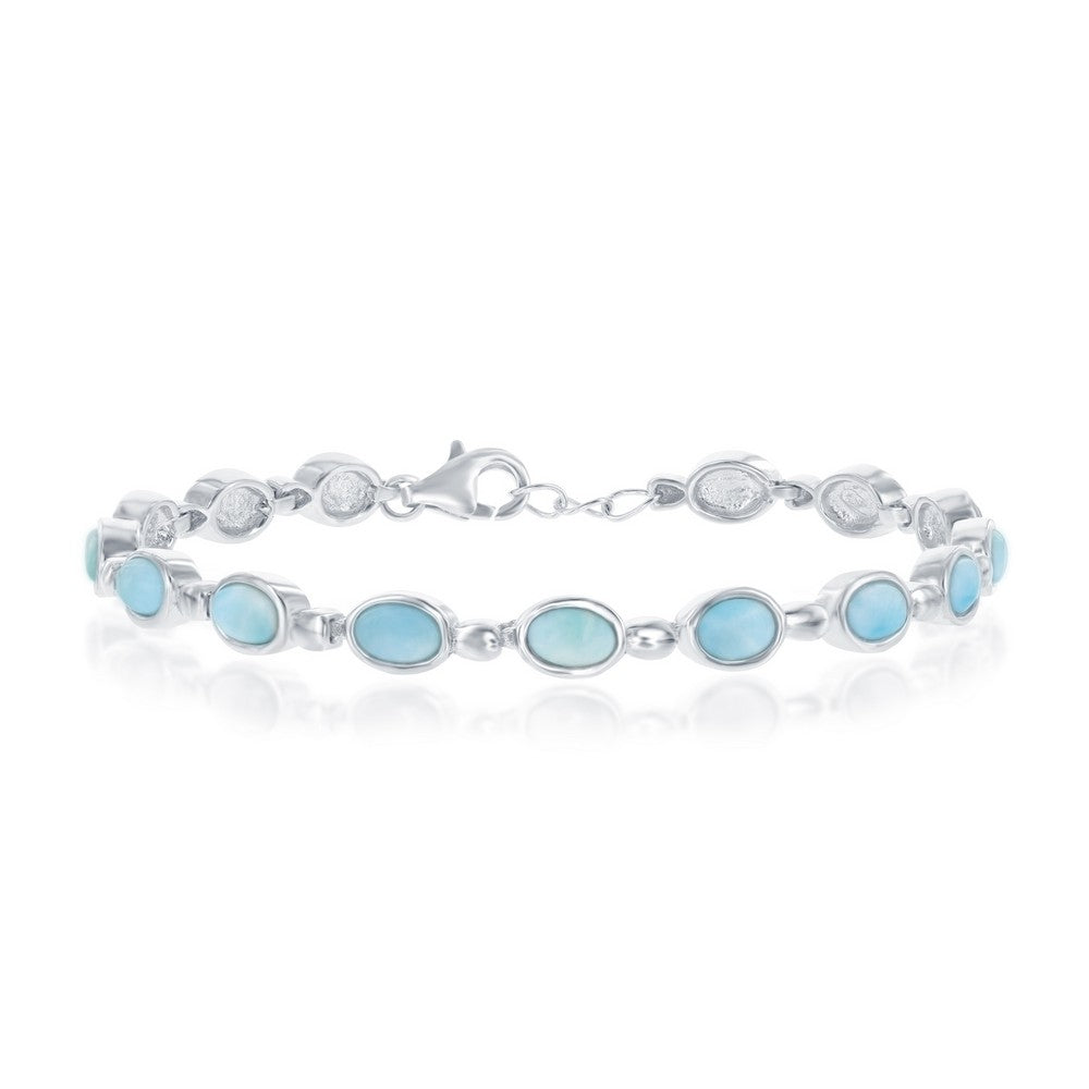Sterling Silver Bezel-Set Oval Larimar Linked Bracelet