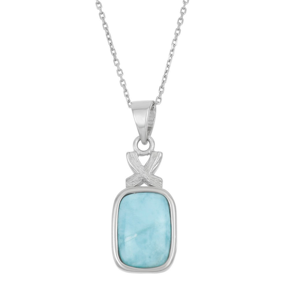 Sterling Silver X Design Larimar Rectangle Pendant